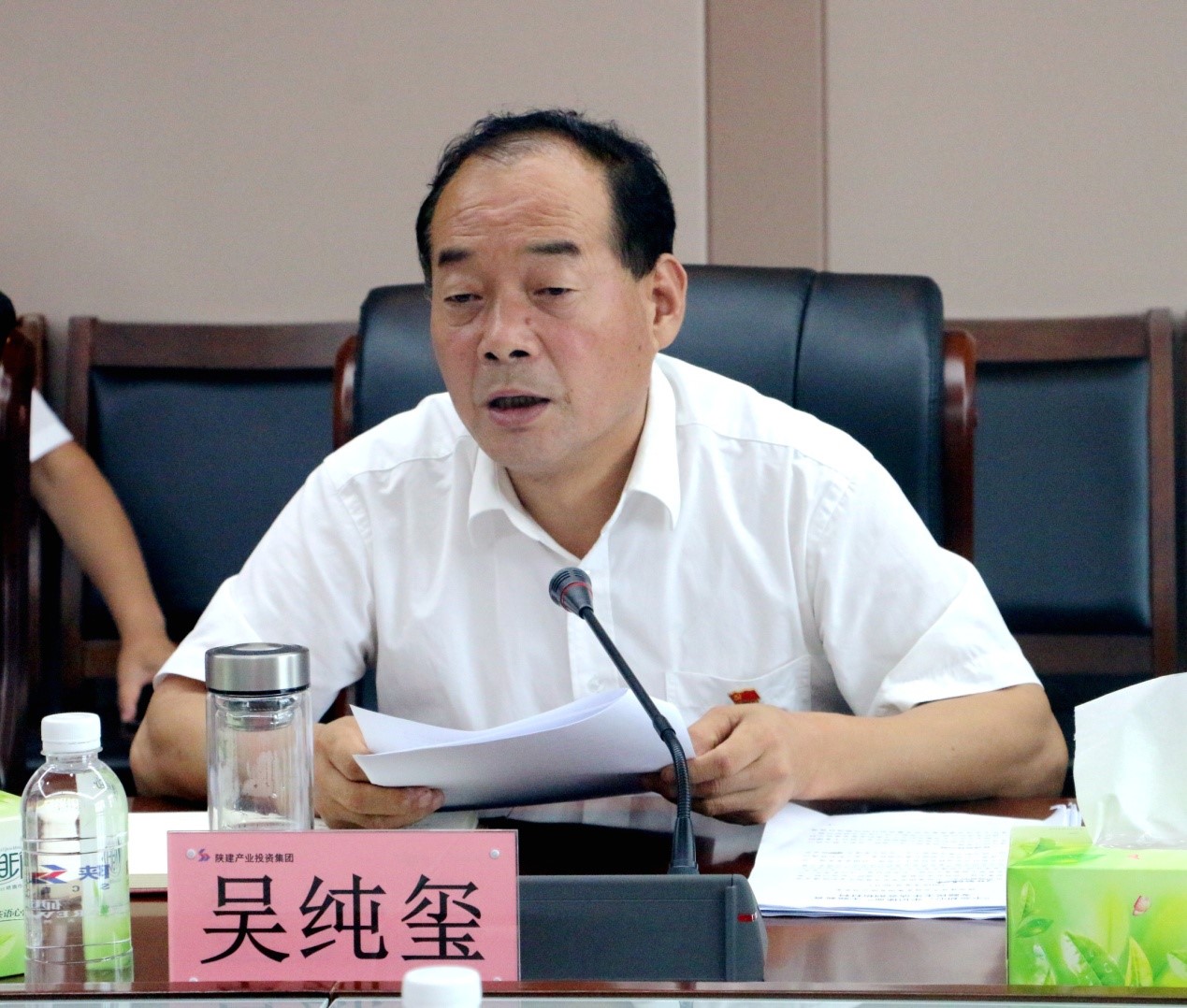 陜建集團(tuán)主題教育第一督導(dǎo)組組長(zhǎng),集團(tuán)黨委書記、董事長(zhǎng)張義光作點(diǎn)評(píng)講話。督導(dǎo)組成員、陜建集團(tuán)黨政辦公室主任蘇健,督導(dǎo)組成員、陜建集團(tuán)后勤事務(wù)管理中心副主任任天峰到會(huì)指導(dǎo)。陜建董事,產(chǎn)投集團(tuán)黨委書記、董事長(zhǎng)吳純璽主持會(huì)議。